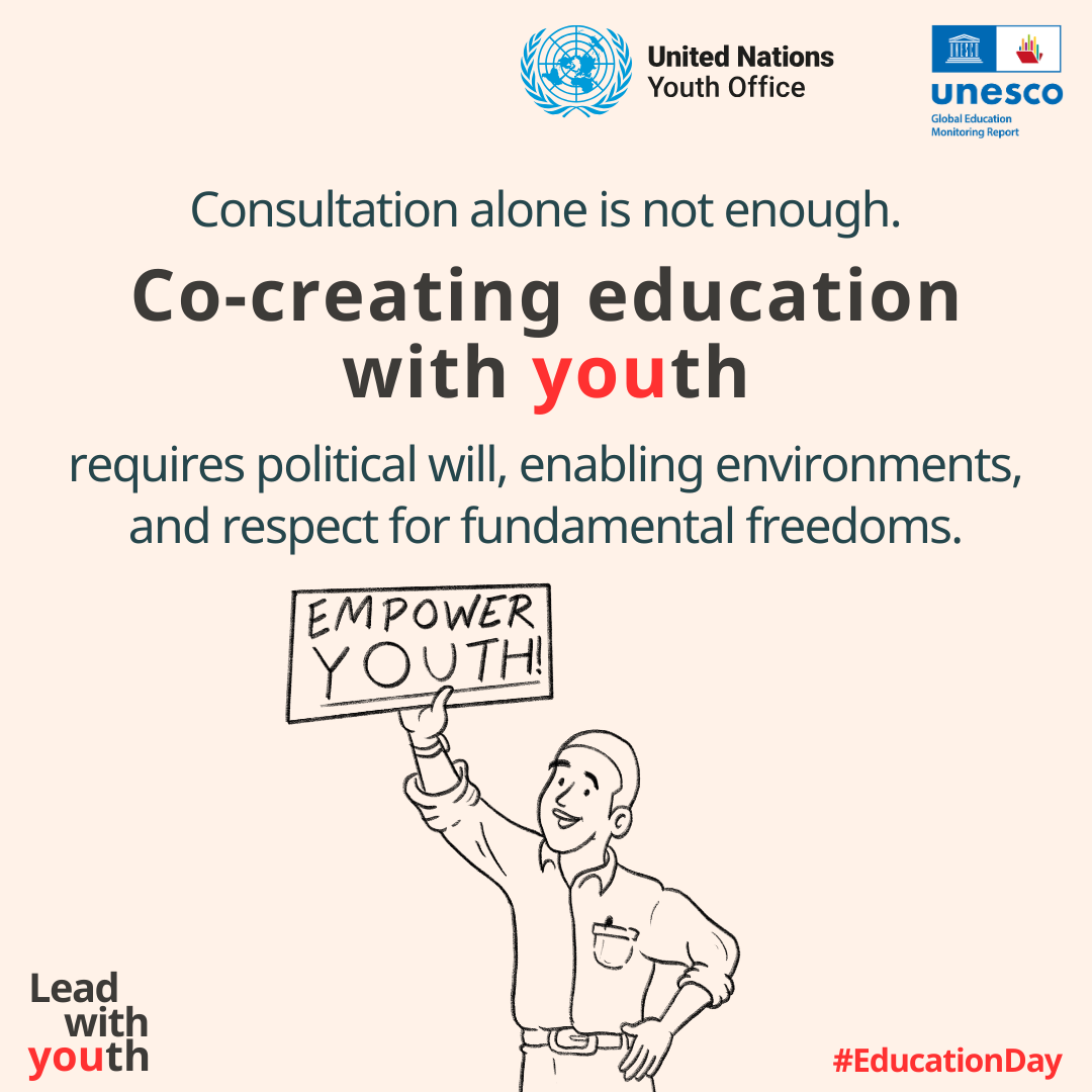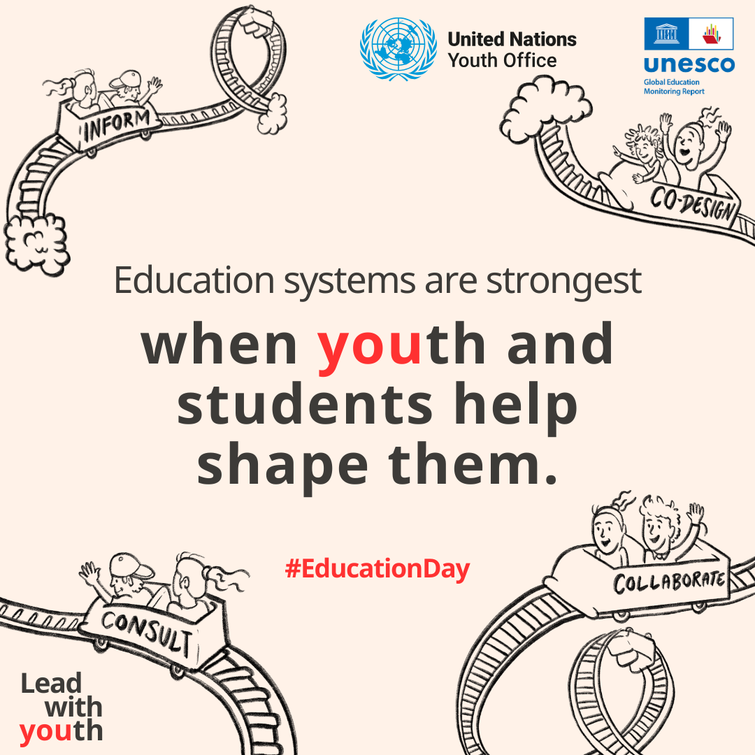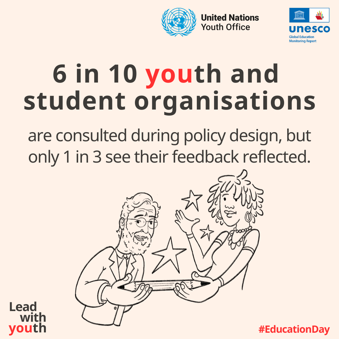 Today, on the International Day of Education, the Global Education Monitoring Report officially launched the 2026 Youth Report, Lead with youth, developed in partnership with the United Nations Youth Office. The Global Student Forum is proud to have supported the development of the report and to have facilitated contact to the GSF membership to take part in the global survey of youth and student organisations.